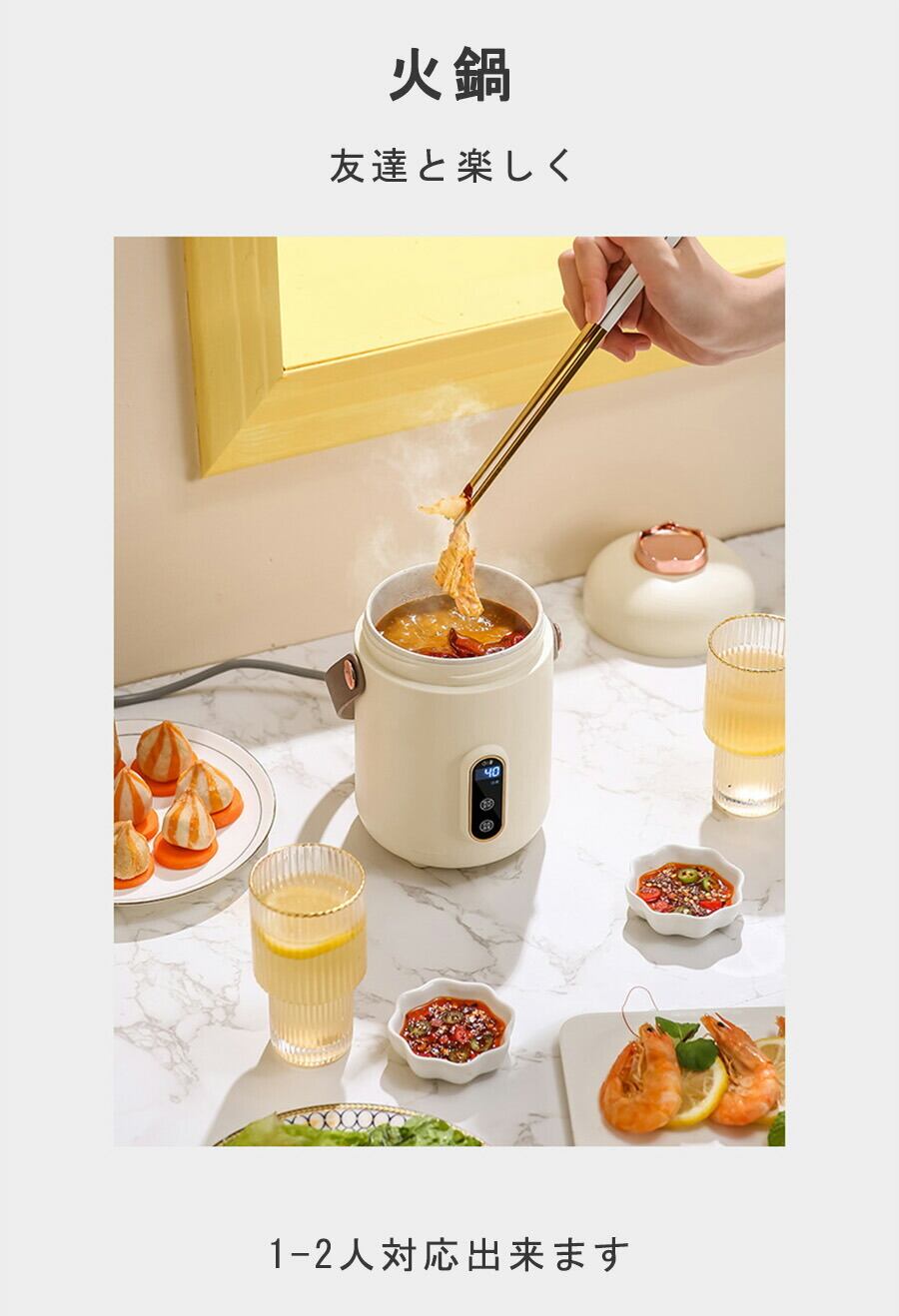 万能電気調理鍋 空焚き防止 予約調理機能自動調理鍋 ミニ炊飯器 ミニ火鍋 キッチン家電 多機能 小型 パーティー コンパクト ギフト 調理器具 ミキサー