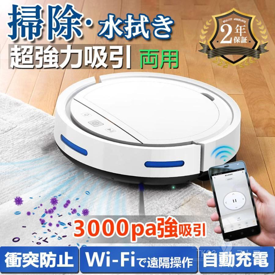 即納 ロボット掃除機 省エネ 3000Pa 強力吸引 静音 水拭き両用 超薄型 落下防止 衝突防止 WiFi遠隔操作 自動充電 お掃除ロボット 知能自動掃除 プレゼント