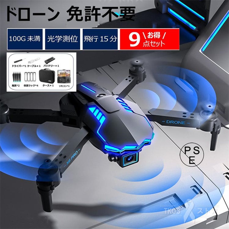 ドローン 免許不要 6k 高画質HD カメラ付き 100g未満 ィカルフロー機能 3面障害物回避 航空写真 ヘッドレスモード 高度維持 スマホ操作 子供向 日本語説明書付き