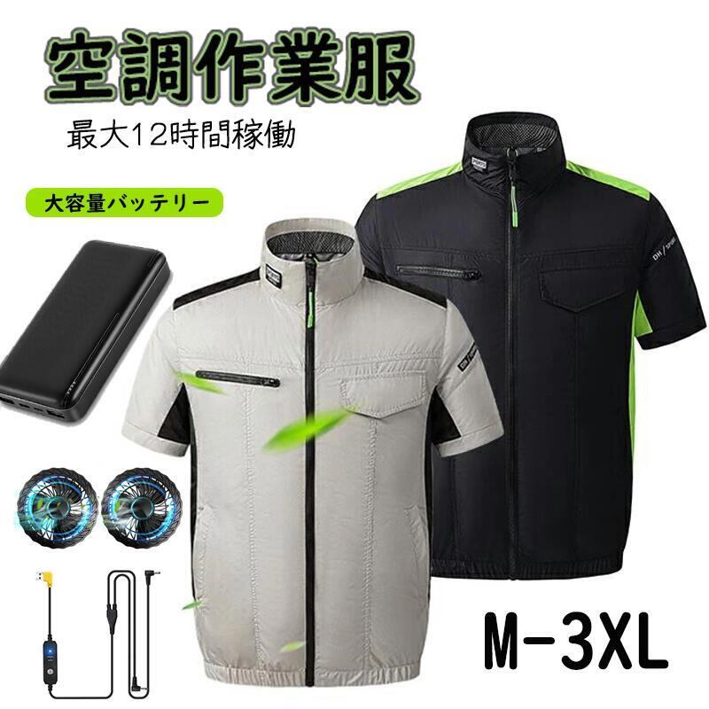 空調作業服 空調ウェア 作業空調服 半袖 バッテリーセット2024 大風量 電動 最大20時間稼動 大容量 セット 清涼服 夏用 ファンバッテリー選択必要 通気性